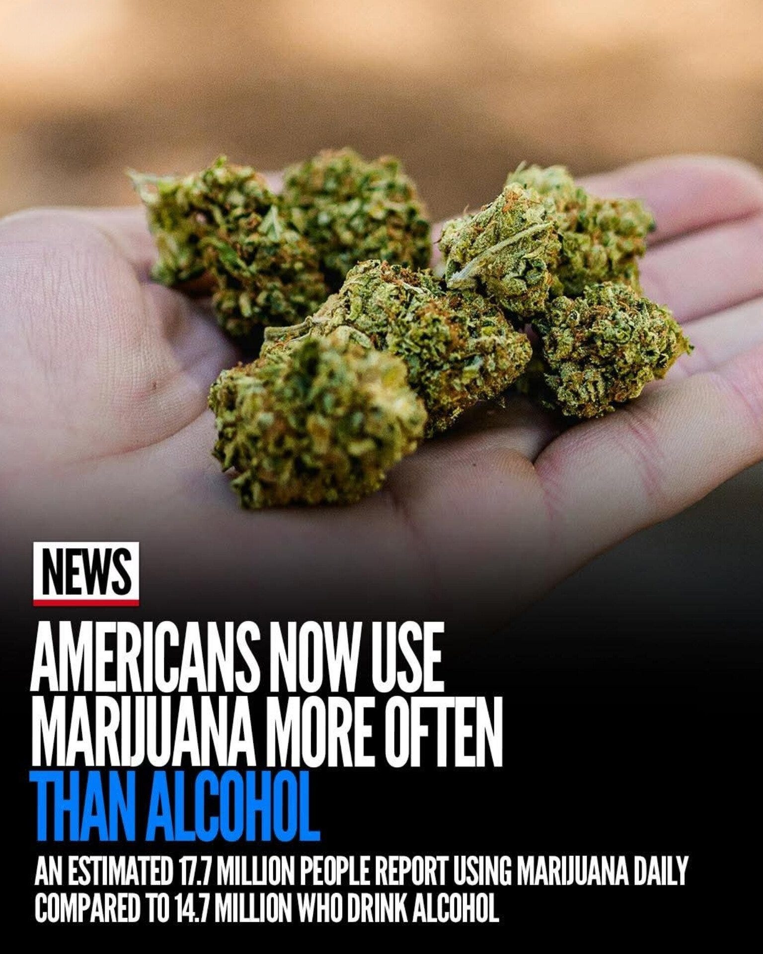 Daily Marijuana Use In US Is Now More Common Than Daily Alcohol Drinking