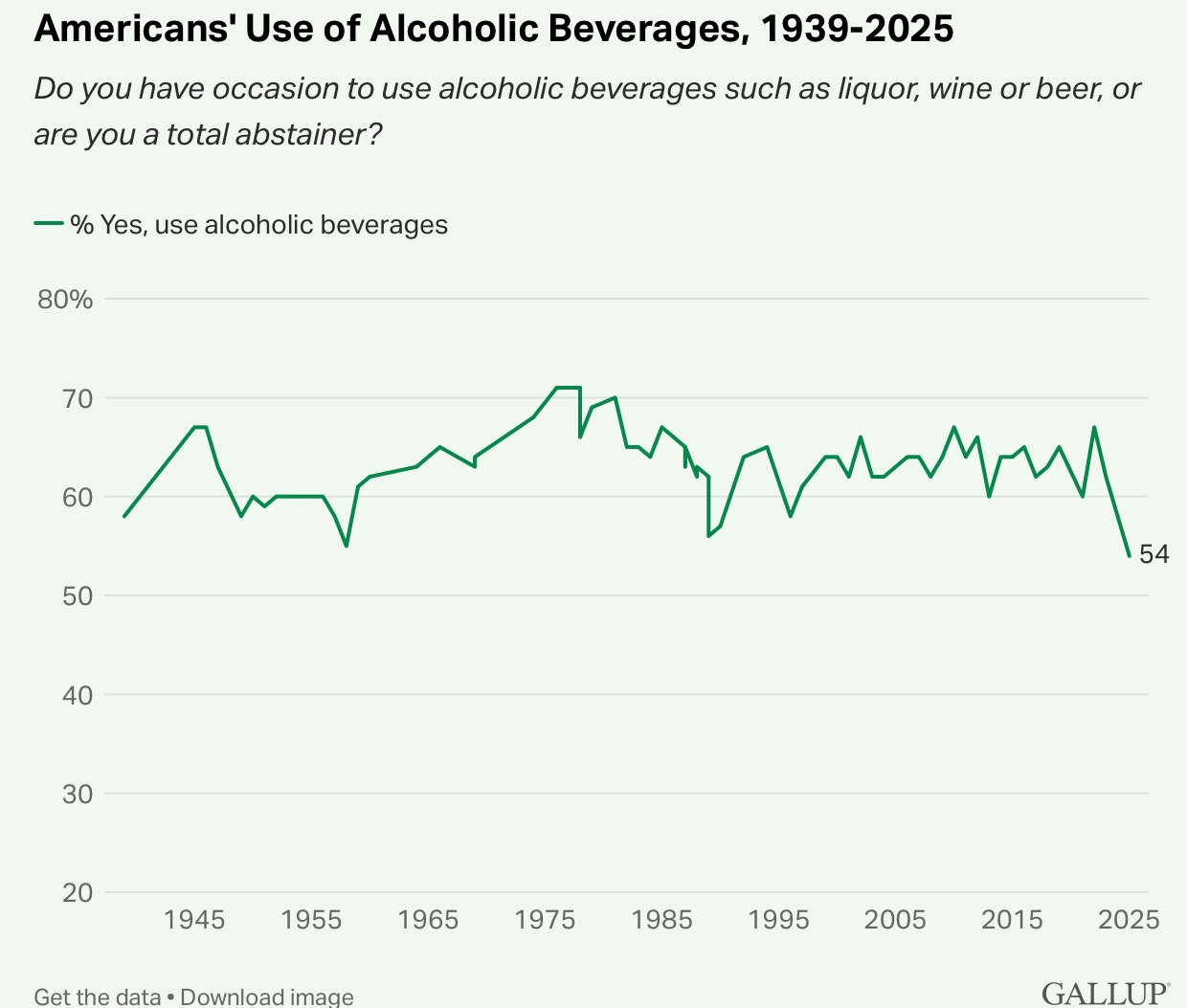 Consumer demand for this category is growing as Americans drink less booze. Per a July Gallup survey, the percentage of U.S. adults who say they consume alcohol fell to 54%, the lowest level since 1939, when they first began tracking consumer behavior.